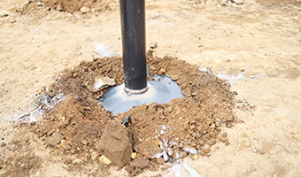 振れ止めのない機種の場合、50㎝程度のガイドを堀削をしておくと工程がはかどります。