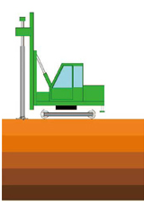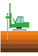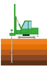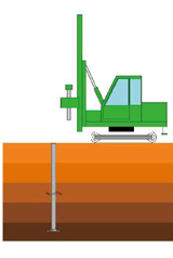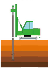 鋼管に回転力と圧入力を与えて地盤中に回転貫入させる。